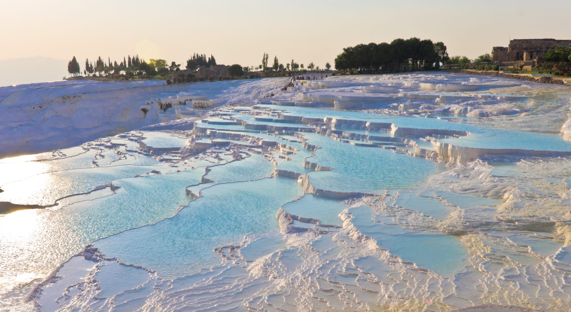 to the magnificent white calcium terraces, known as travertines, in Pamukkale, where we will also